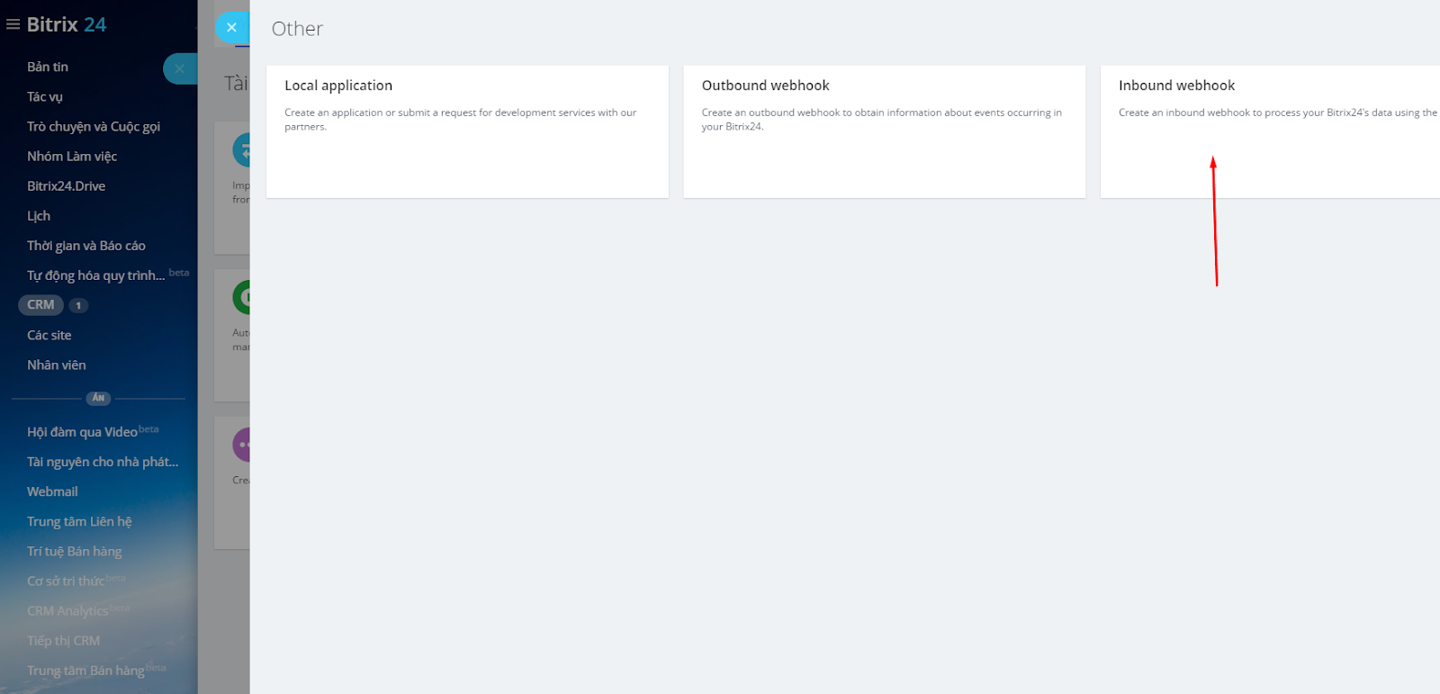 2. Tích hợp Inbound webhook của Bitrix24 để Lưu Lead/Deal/Contact vào AhaChat